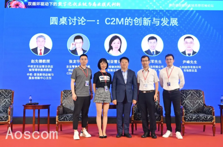 随后,京东零售智能供应链Y业务部C2M平台部总经理张龙宇先生、哈士奇制冷科技股份有限公司CEO刘亚雪女士、江苏宝洁有限公司总经理及厂长李志军先生、九阳股份有限公司市场部总监尹峰先生在赵先德教授的主持下进行了题为“C2M的创新与发展”的圆桌讨论。