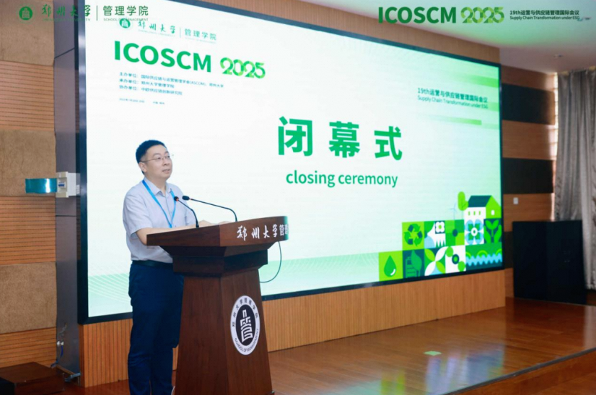 2025年7月19日,第十九届运营与供应链管理国际会议(ICOSCM 2025)在河南郑州隆重开幕。会议由国际供应链与运营管理学会(ASCOM)、郑州大学联合主办,郑州大学管理学院承办,中欧供应链创新研究院协办。来自中国、美国、英国等海内外高校的近300位专家学者齐聚郑州,围绕“ESG背景下的供应链转型”展开深入研讨。郑州大学党委常委、纪委书记陈曦,郑州大学管理学院党委书记王淑英,国际供应链与运营管理学会主席、浙江大学求是特聘教授霍宝锋出席会议并致辞。