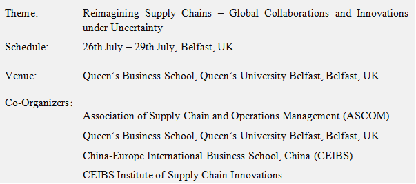 The International Conference on Operations and Supply Chain Management (ICOSCM) will celebrate its 20th anniversary in July 2026 with the theme Reimagining Supply Chains – Global Collaborations and Innovations under Uncertainty. Queen’s Business School at Queen’s University Belfast is honoured to host this milestone event, bringing together academic scholars and industry practitioners from around the world.