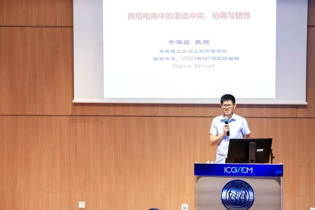 中国科学技术大学教授余玉刚进行了题为“研究范式驱动数字智能产研融合探讨——数智供应链为例”的主旨演讲,围绕商学院未来的发展路径、研究范式,以及博士生培养经验分享了见解。林雪平大学教授唐讴分享了题为“从瑞典和欧洲的角度展望氢市场”的主旨演讲,分享了三个典型案例,并就未来发展挑战进行了讨论。华南理工大学大学教授牛保庄进行了题为“跨境电商中的渠道冲突、协调与韧性”的主旨演讲,从介绍跨境电商的蓬勃发展背景出发,关注跨境电商中的冲突与协调难题、经济效益与韧性表现,并分享了一家网络零售商对全球供应链中渠道中断信息的战略等待决策研究。
