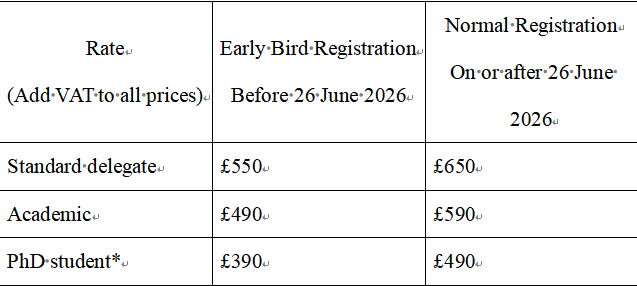 - 早鸟登记截止日期:2026年6月26日