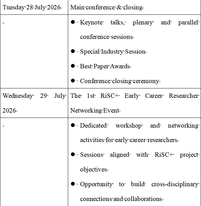 - 日期:2026年7月26日星期日至29日星期三